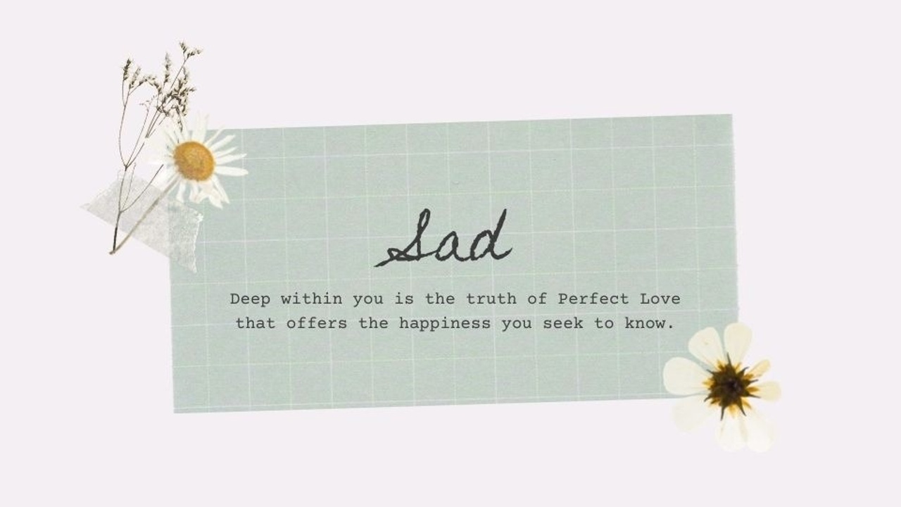 There is no need to stick with suffering when The Treasure Map is here to undo pain and move you to peace. Give up your sadness to find the truth of happiness within. True healing has arrived and the more guilt you give up the greater the grace of love you shall know. I have given up my tears for truth as I discovered my being of Perfect Love and you can too.